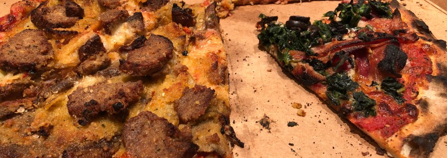 Our test pizza, the our favorite pizza to order from places that aren’t Modern, is aptly (self) named The KK Special. The KK Special consists of sauce and mozzarella, with sausage, black olives and ricotta. This is an especially difficult pizza to master, as you need to find not only the balance of the toppings, but you must ensure you have a crispy enough crust to hold up to the soft ricotta. (If you deliver a soggy pizza, you are one and done).