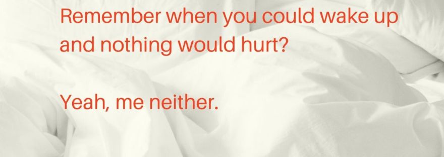 I’m an early riser. As I open my eyes each morning and let them adjust to the darkness in the room, I squeeze my muscles and twist and turn every so slightly to take inventory, and to get an idea of where the pain is going to be when try to make myself vertical.