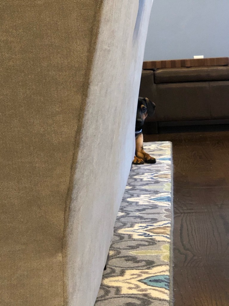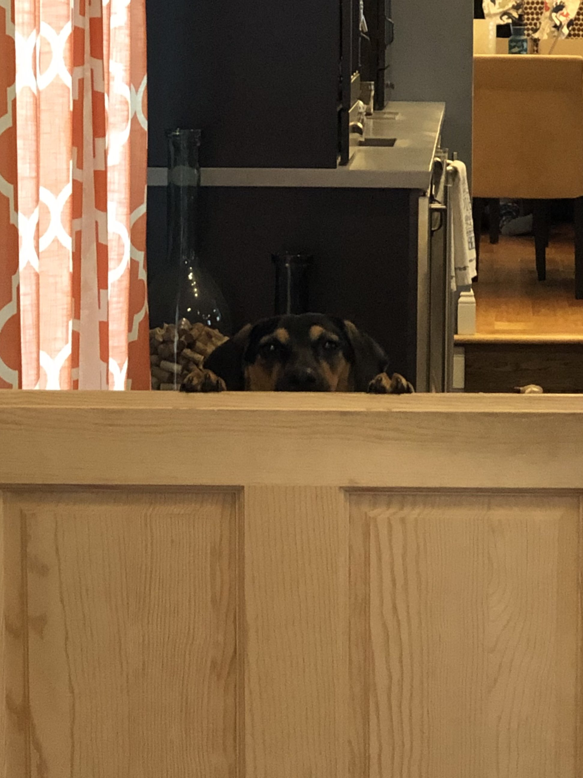We didn’t know when we adopted him he’d become velcro dog, but I suppose being with us 24/7 trained him to think we’d always be around. Sometimes Bruno’s FOMO is cute and it makes me feel very loved and admired…at a very close distance. And I hear that Rockwell song in my head, “(I Always Feel Like), Somebody’s Watching Me…”