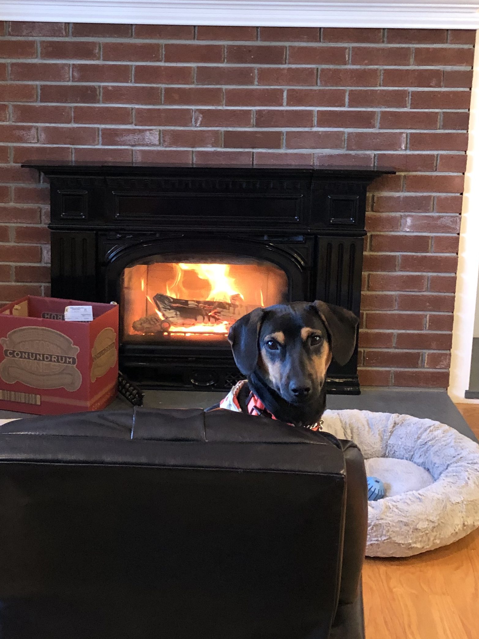 In the early spring, when we started going out again, we could not leave the house without Bruno freaking out. He’d be in his crate, scratching at the bottom like crazy, whining and crying. One time, he moved his crate halfway across the kitchen floor because he was trying to get out so badly! We were prisoners in our own home! It took a bit of training, leaving for short periods, and some “herbal” remedies of a spray and some calming drops to get him to be calm when we put him in his crate when it’s time for us to go out.