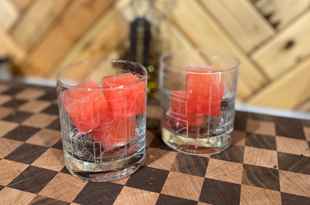 Now, I like to add a little something special to this drink: grapefruit ice cubes!