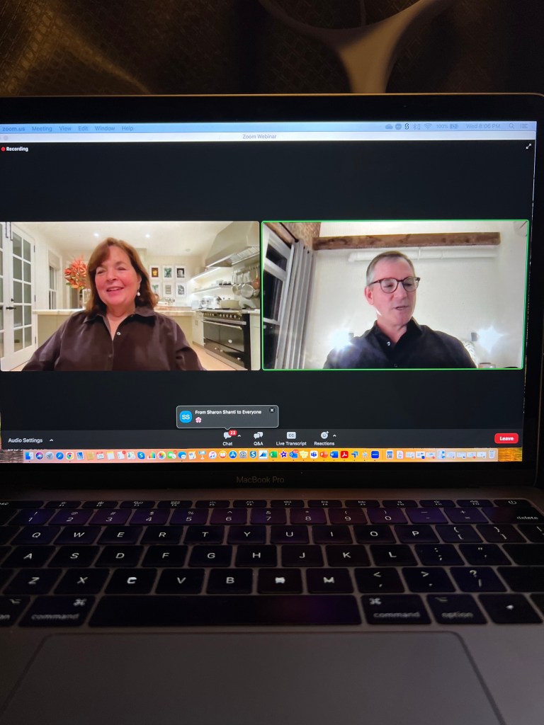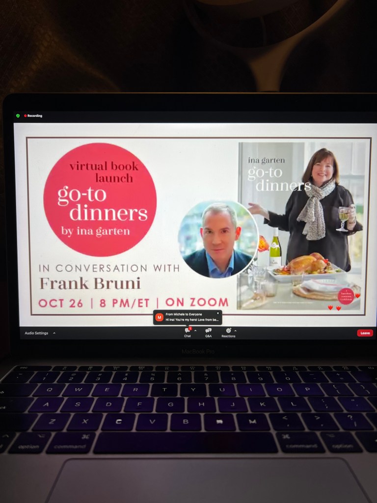 A little independent bookstore (remember those?) here in Connecticut was celebrating the release of Ina’s new cookbook, Go To Dinners, by offering a ticket to a zoom interview with Frank Bruni and Ina with the purchase of the book. Sign me up!