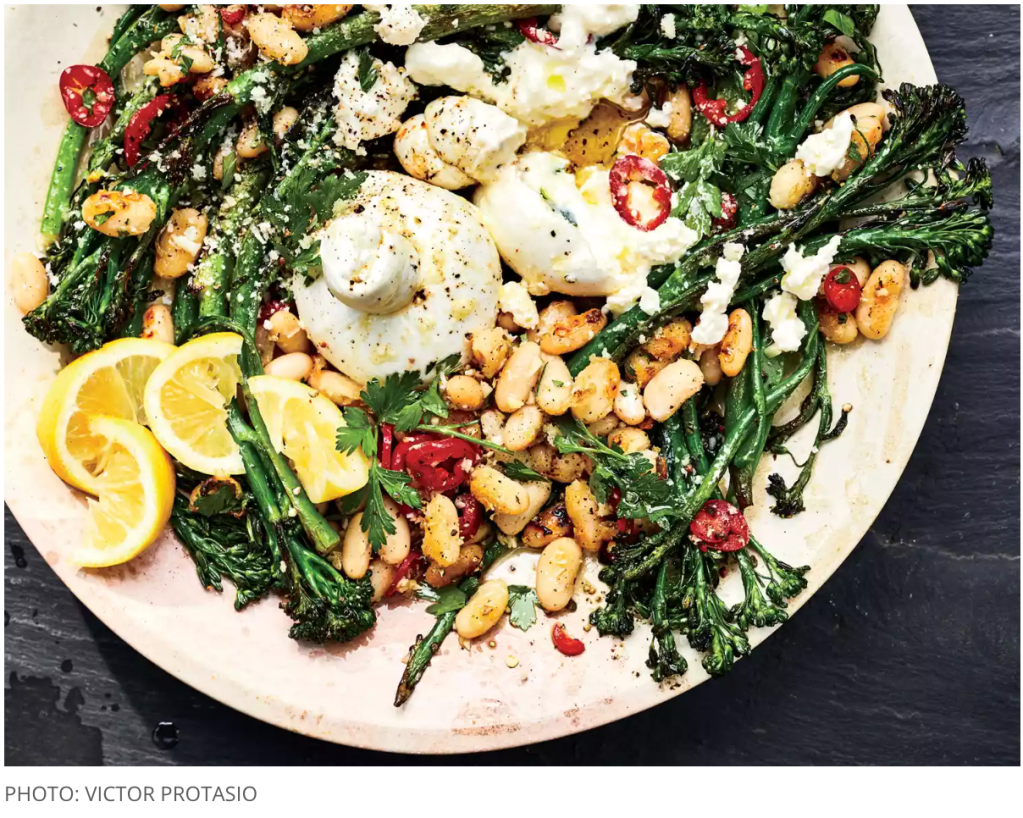 1. Cacio e Pepe Broccolini with Crispy White Beans and Burrata