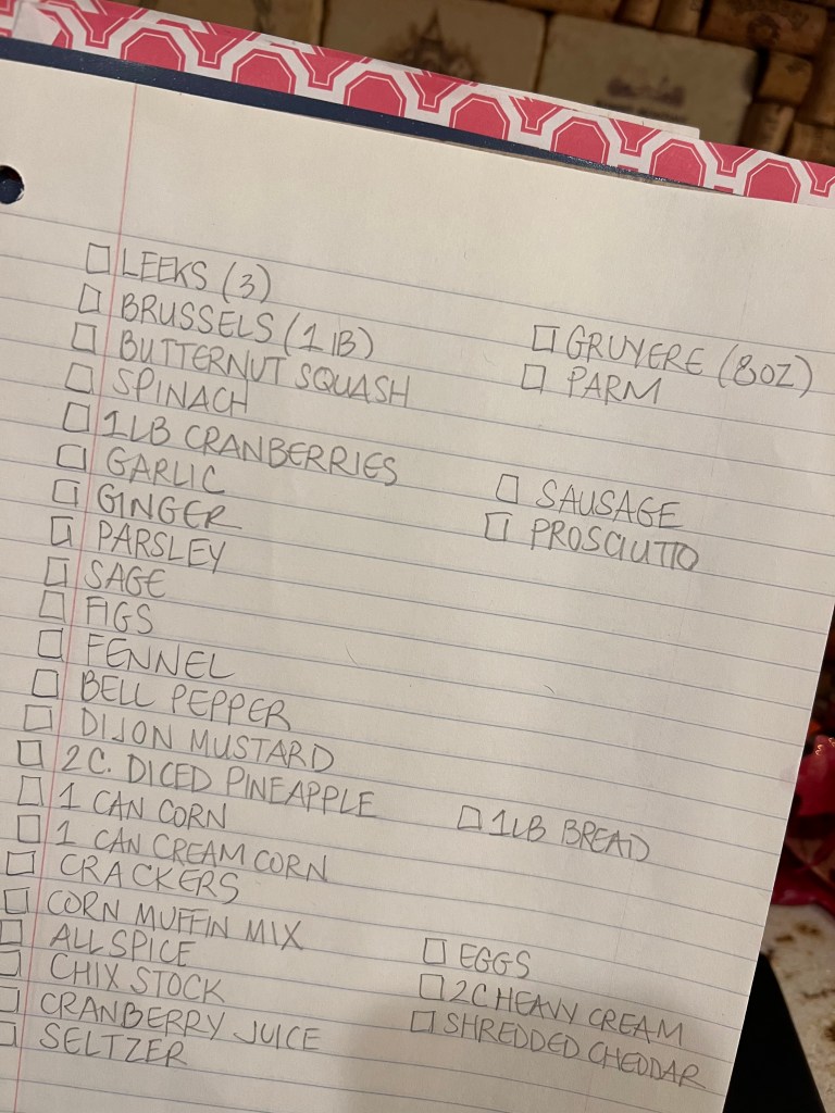 I take out my trusty notebook that I use for all holidays and parties and make the master list of what I’m going to make for Thanksgiving. I then go through each recipe and list the ingredients that I need to purchase under each item. This involves cross-checking the recipes with what I have in the pantry and fridge. I also put all of the recipes in one place (usually in the Notes app on my phone) so I’m ready to go. Meanwhile, Mr. KK makes his to-do list for Thanksgiving. This usually includes things like “remove the screens from the windows” and “vacuum out the fireplaces”. You know, Thanksgiving things.