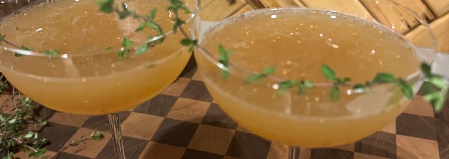 Strain into a coupe glass and garnish with a sliced fig and thyme sprig.