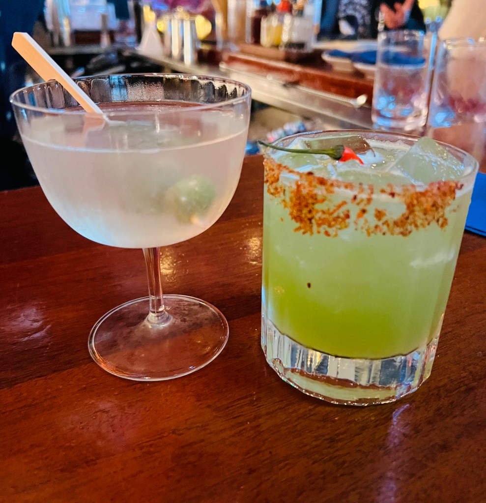 Our cocktails at The Pearl. Check out my fancy coupe glass for my martini.