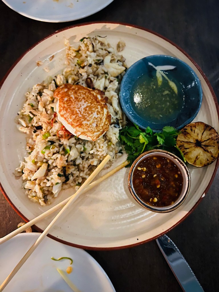 Nautilus has one of those menus where everything sounds amazing, and you usually just start ordering and dishes just start appearing at the table. We ate many delicious things, but the stand out dish for us were the Romano beans. Sounds silly, but these beans were prepared in a sauce that was so tasty, here we are 5 months later and Mr. KK and still talk about them. They were that good. We ate them so fast we didn’t even get a picture of them! But I did get a photo of the blue crab fried rice, which was also delicious.