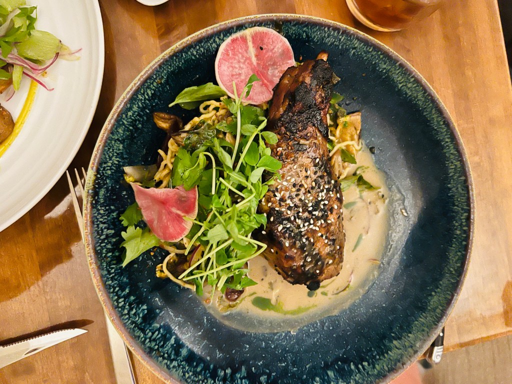 That night, we had reservations at Dune (which I just now learned has permanently closed, which is so unfortunate because the food was delicious!). We were able to walk to dinner (again, GREAT hotel location) and we were ready to eat! We shared a few appetizers, and I ordered the chicken and Mr. KK ordered the pork tenderloin. Once again, everything was delicious, and the presentation was beautiful. We were seated inside, but it looked like the restaurant had a pretty lively patio as well.
