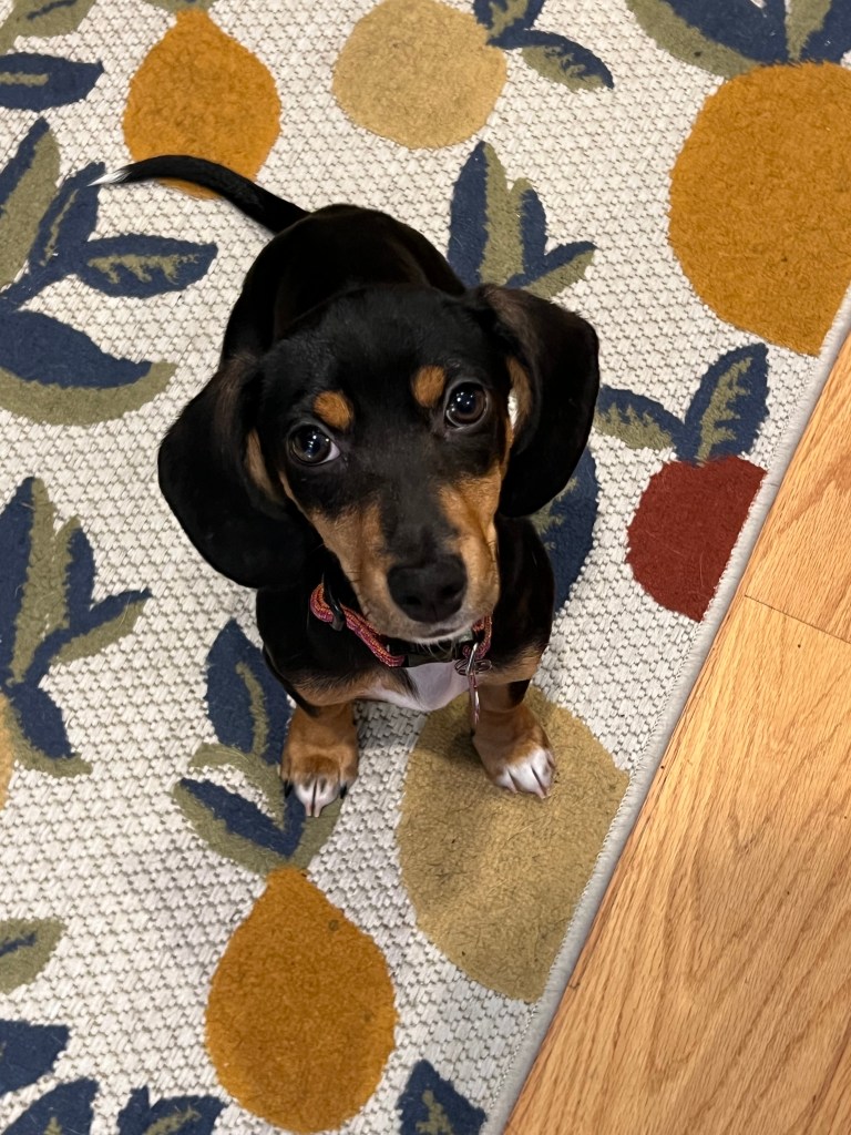 We were so very lucky that when we brought Lucy home, she slept through the night. She was just about 4 months old – so not a teeny tiny puppy – but still, having her sleep for a full 8 hours was magical. And she’s done it ever since.