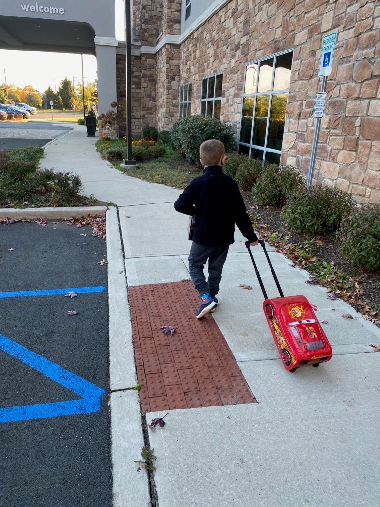 Little Mister is not an experienced hotel visitor so he thought who he was rolling his suitcase up to the front desk. Since we’re still in a pandemic and I have an unvaccinated child, once we got into the room we stayed there: bringing in take out and watching movies on TV.